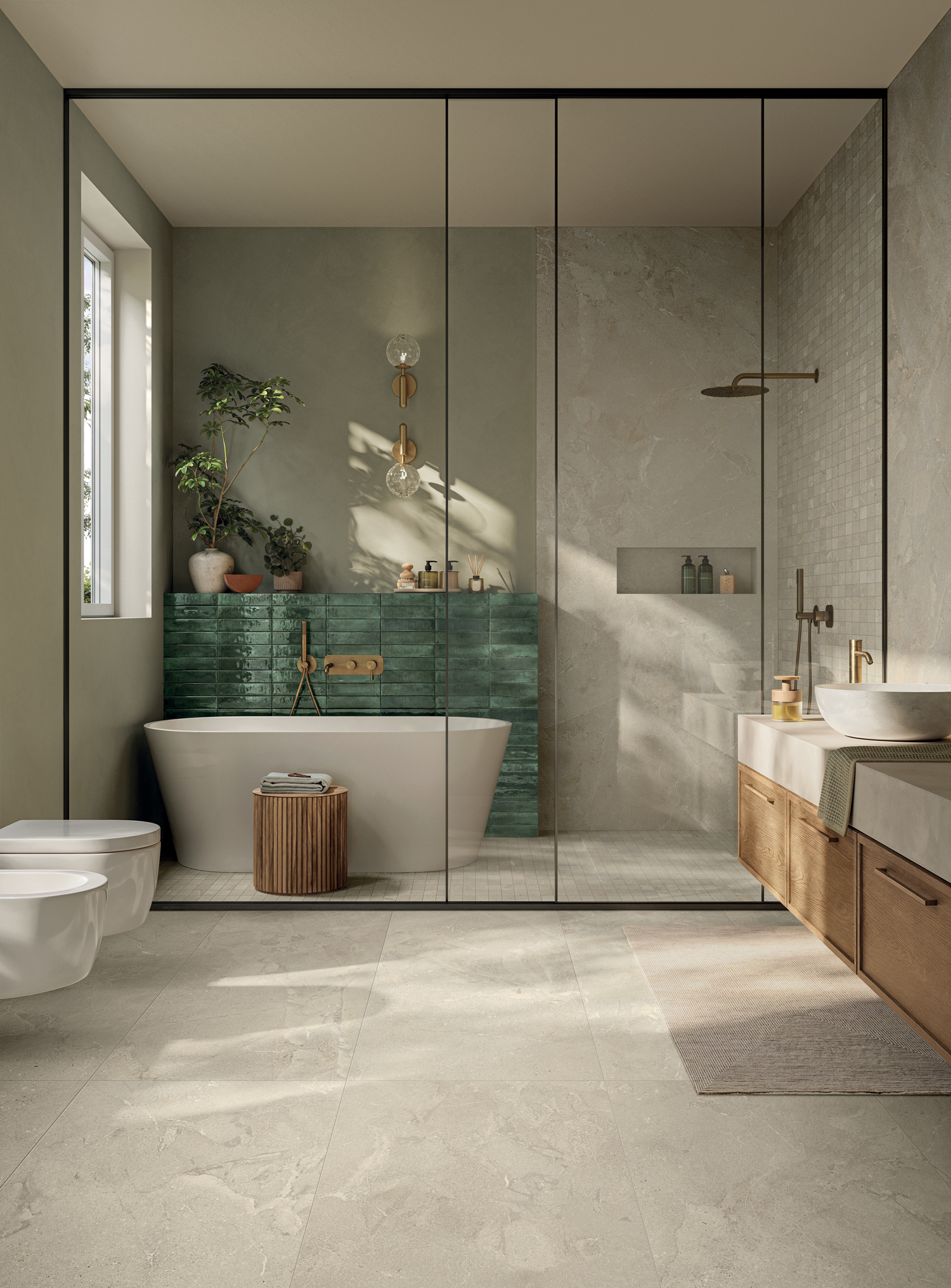 Revel fait partie de PROTECT®, ligne exclusive de revêtements de sol et muraux antibactériens en grès cérame, garantissant des performances très élevées, pour une maison saine, sûre et protégée.
