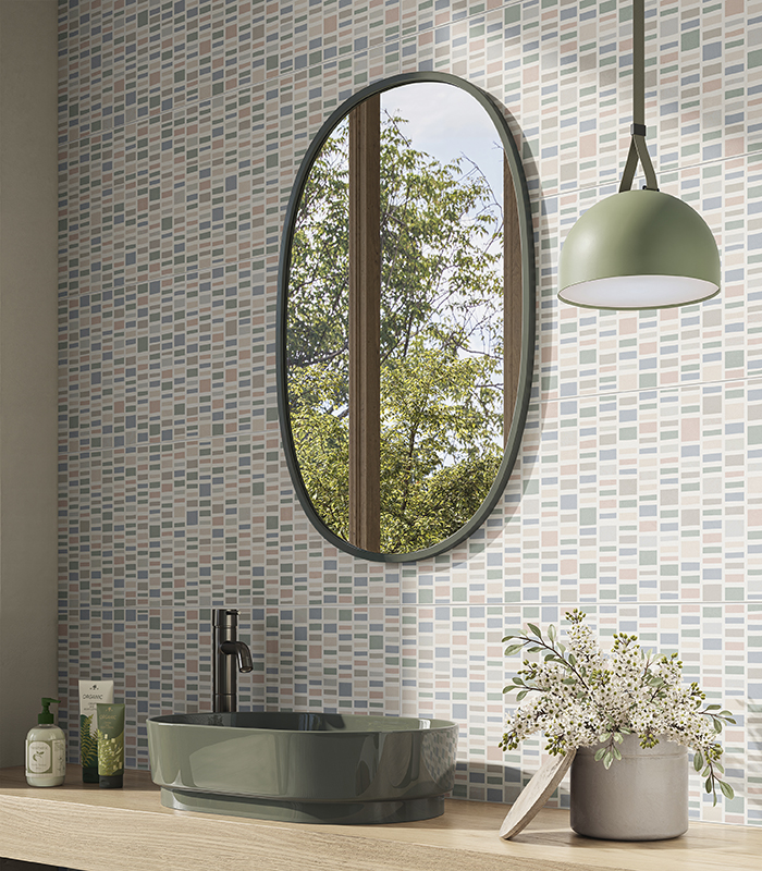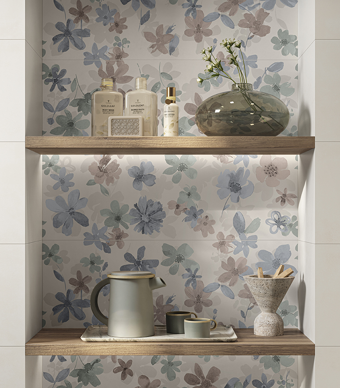 Sa riche gamme décorative combine rayures, aquarelles, géométries et reliefs pour créer des murs décoratifs et revêtements céramiques légers et élégants, également idéaux pour les séjours et les chambres. Lullaby est une collection qui transforme la simplicité en poésie visuelle, apportant une touche de douceur à chaque projet d’aménagement.