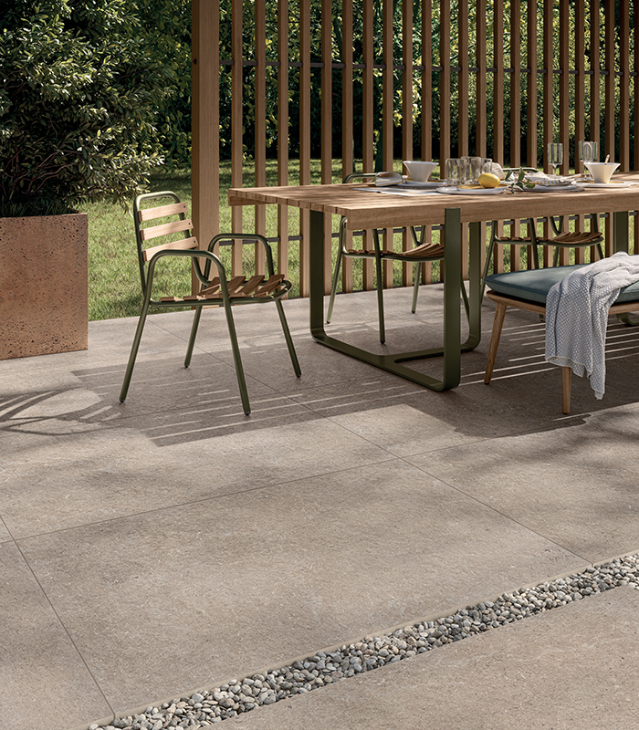 Ces surfaces sont résistantes au gel, aux changements de température, à la moisissure, aux taches et au sel. Elles présentent également une haute résistance au glissement et sont faciles à nettoyer, matériau et couleur restant intacts au fil du temps. L’idée : valoriser encore plus la vie en plein air, avec des collections idéales pour aménager au mieux l’espace extérieur de son habitation.