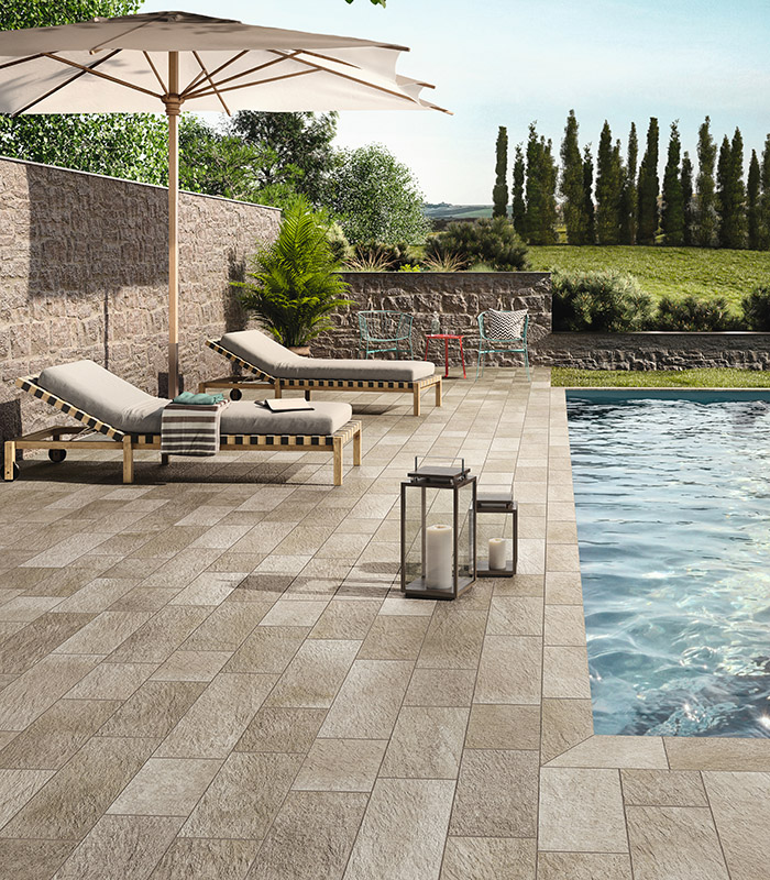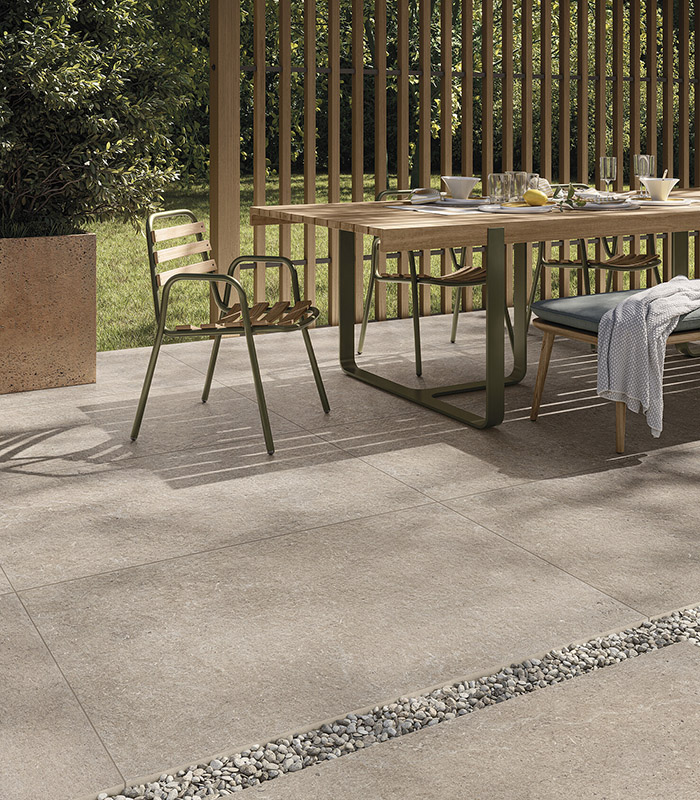 Lorsque l’on évoque le côté vieilli, le vintage se manifeste immanquablement dans notre esprit, nous reportant même à des dîners en plein air entre amis de longues dates. La convivialité ici n’est réservée qu’aux amis les plus proches, ceux qui sauront garder le secret : on discute à voix basse de projets futurs et des rêves que l’on souhaite partager. Pour recréer cette atmosphère, osez la version de grès cérame pour extérieur de la collection Surround. Grâce à ses lignes épurées et discrètes, ses surfaces sauront allier le moderne au classique, pour reporter à l’heure actuelle les souvenirs d’antan.