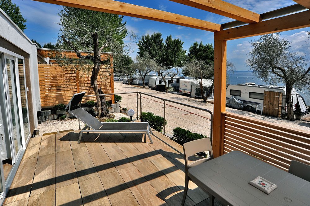 Les surfaces en grès cérame de Panaria Ceramica sont les protagonistes incontestées des splendides terrasses du Camping delle Rose, situé sur une surface de 30 000 mètres carrés à Moniga del Garda, dans le département de Brescia.