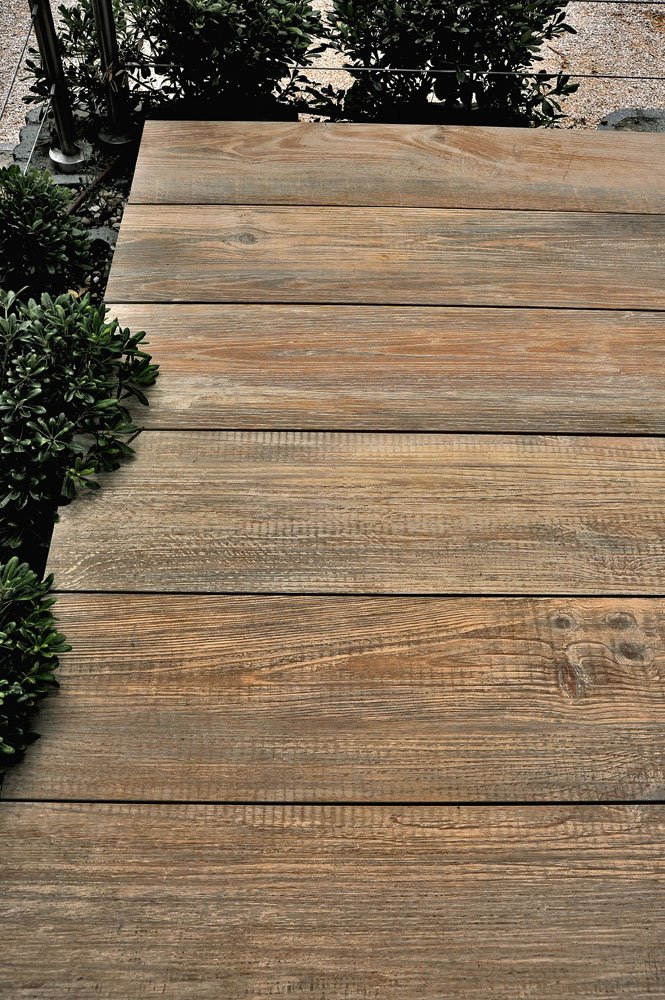 Cross Wood de Panaria Ceramica réinterprète le bois naturel dans la beauté de ses veinures, de ses nœuds et de ses nuances chromatiques, dans des tons miel. Les lattes, format 30×120 cm, donnent du dynamisme à la surface, posée avec système flottant sur des supports fixes, une solution plus simple qui a été adoptée pour des raisons pratiques.
